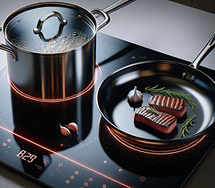 Vasta gamma di pentole per induzione in diverse grandezze e piastre per induzione da banco in varie potenze e misure