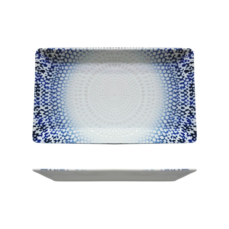 Realizzato in porcellana professionale, questo vassoio garantisce robustezza, resistenza agli urti e lunga durata, anche in contesti di utilizzo intensivo come ristoranti, hotel e catering. La superficie smaltata preserva nel tempo brillantezza e vivacità dei colori, mentre la compatibilità con lavastoviglie, forno e microonde ne assicura la massima praticità. La sua forma rettangolare, moderna e funzionale, lo rende un piatto versatile, ideale per servire colazioni, antipasti, primi, secondi e contorni, ma anche come centrotavola decorativo, capace di arricchire sia tavole moderne che mise en place più eleganti.
