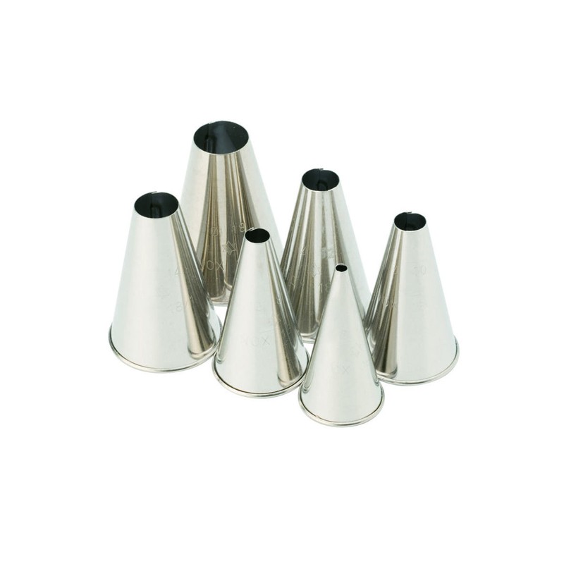 La bocchetta tonda in acciaio inox per sac à poche è uno strumento indispensabile in pasticceria, ideale per realizzare decorazioni semplici ed eleganti con la massima precisione. Perfetta per dressare panna, creme, glasse o per riempire bignè e mignon, si adatta a un’ampia gamma di utilizzi sia professionali che domestici.