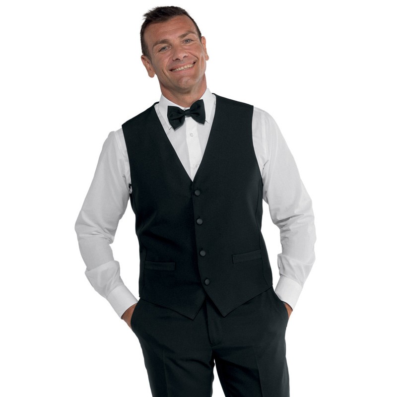Perfetto per completare con stile la divisa da lavoro, questo gilet nero unisex unisce linee pulite, ottima vestibilità e massima praticità, ideale per camerieri, baristi, banconisti e altre figure del settore alberghiero.