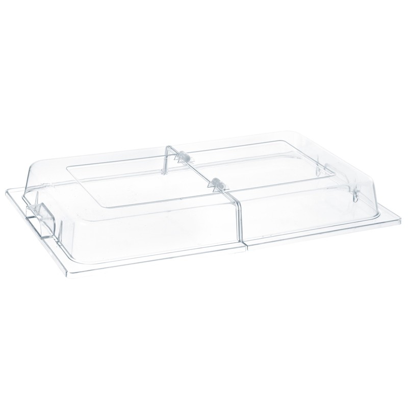 Funzionalità e praticità si incontrano in questo coperchio apribile per buffet, progettato per garantire ordine, igiene e massima comodità durante il servizio.