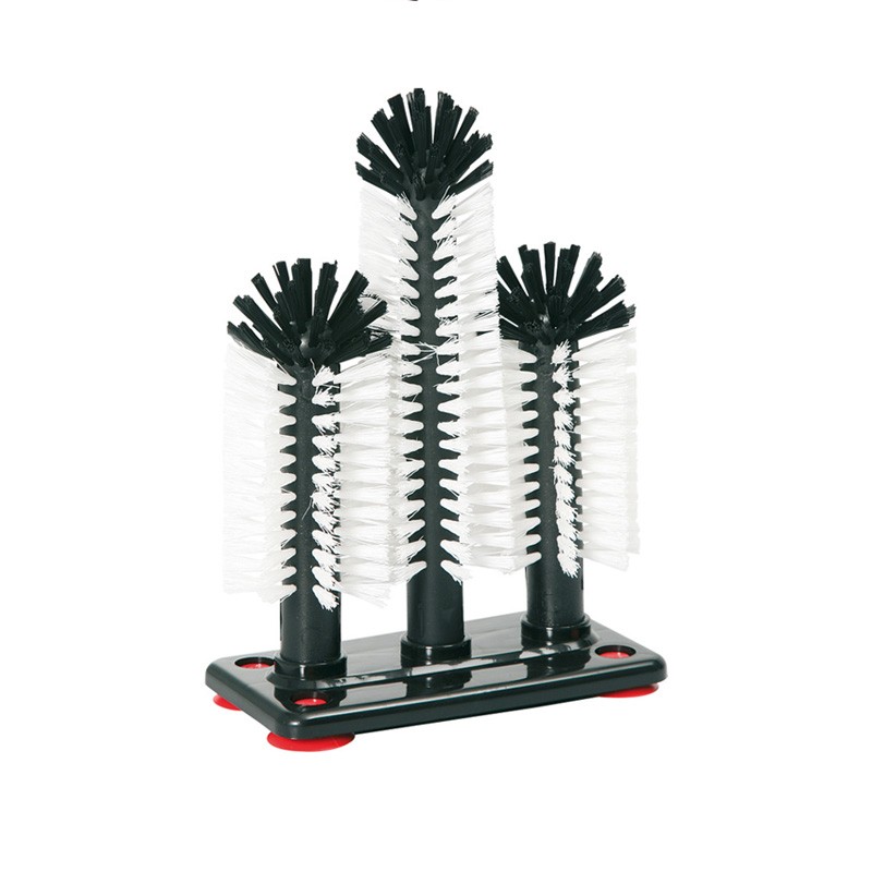 La spazzola centrale più alta facilita la pulizia dei bicchieri profondi, mentre le due laterali supportano il lavaggio completo con un solo movimento. Compatta e funzionale, è pensata per un utilizzo intensivo e quotidiano.