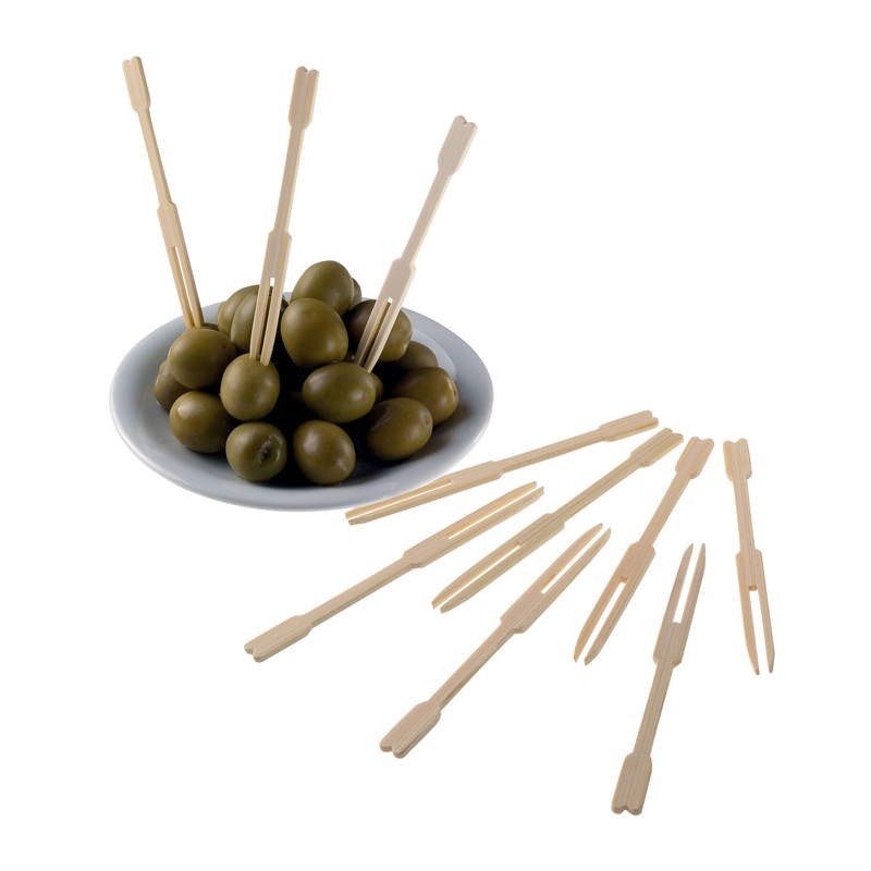 Eleganti, pratiche e naturali, le nostre forchettine a 2 punte in legno di bamboo sono la soluzione ideale per servire stuzzichini, finger food e antipasti con stile.