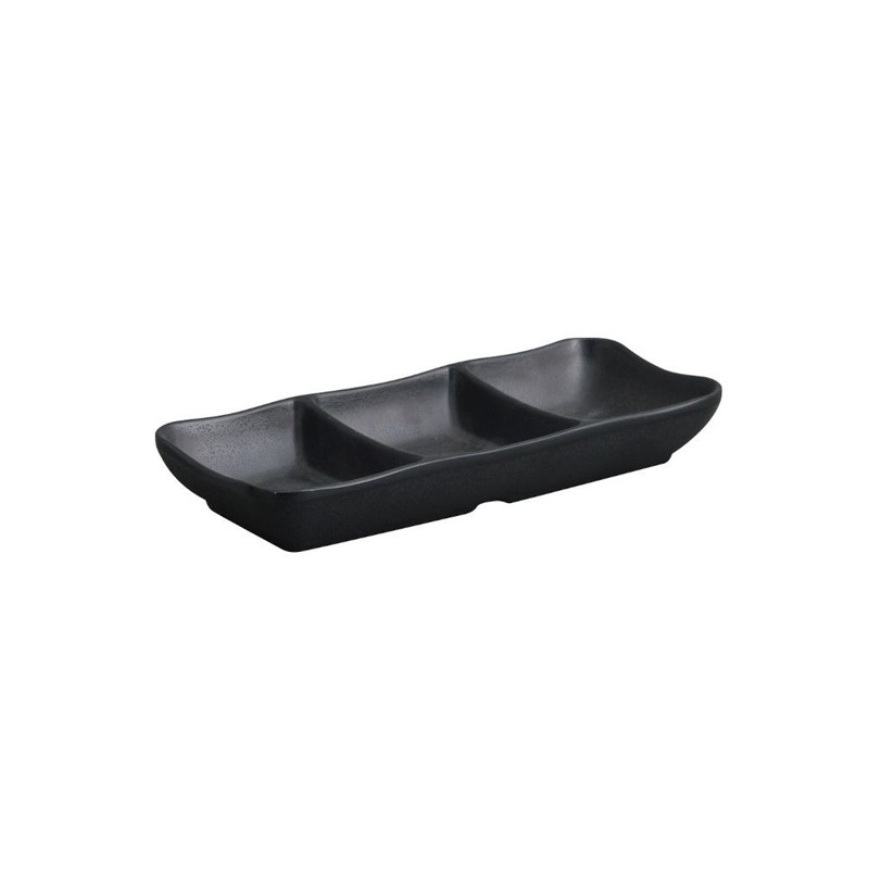 Piattino 3 scomparti melamina nero | Ciotole e ciotoline finger food