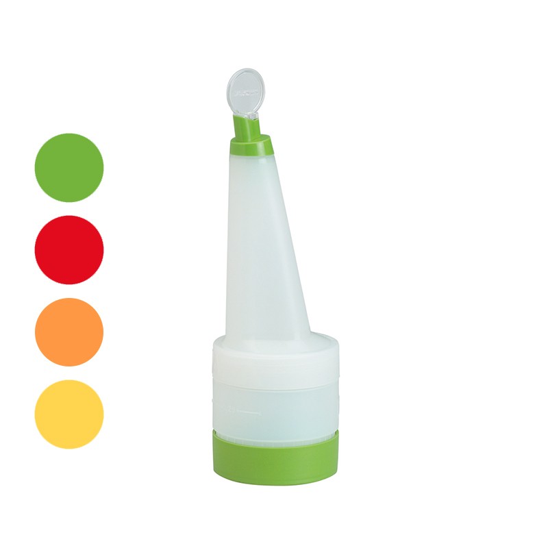 È dotato di tappo di chiusura per conservare i liquidi in sicurezza e di beccuccio versatore con collo avvitatore che consente un servizio rapido, senza sprechi e con il giusto controllo del flusso.