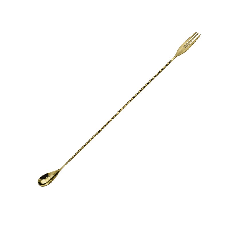 Il manico a spirale offre una presa sicura e una rotazione fluida, facilitando la miscelazione dei cocktail con la tecnica stir. L'estremità a cucchiaino consente di dosare piccoli ingredienti o mescolare con precisione, mentre la forchetta tridente all'opposto è perfetta per inserire guarnizioni come olive o frutta nel drink, velocizzando il lavoro e mantenendo uno stile raffinato.