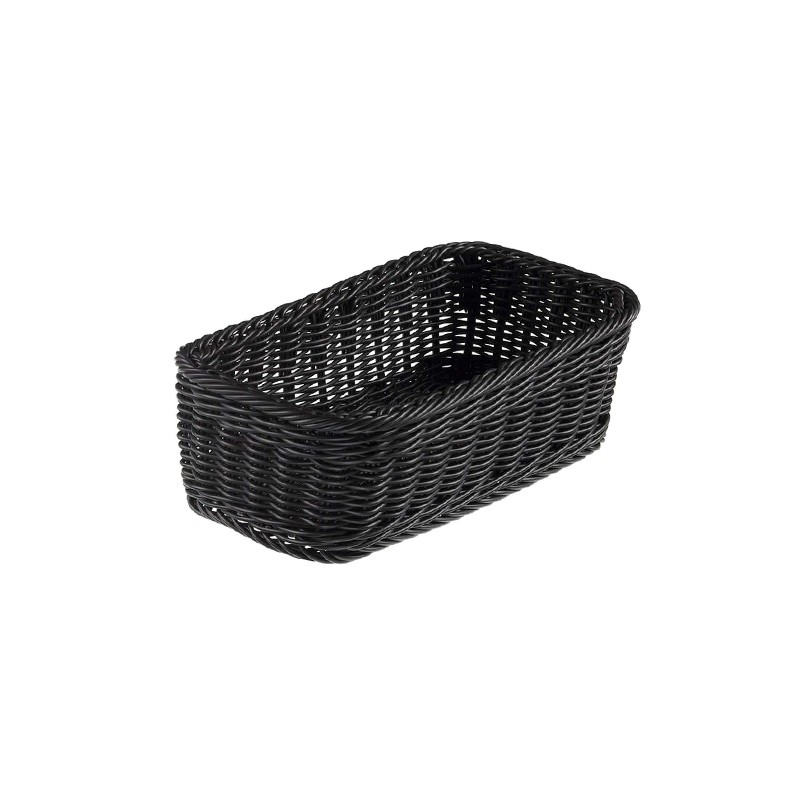 Elegante e resistente, questo cestino intrecciato GN 1/3 nero in polipropilene è la soluzione ideale per l’allestimento di buffet professionali.