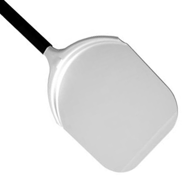 La testa rettangolare da 45 × 45 cm, con spessore di 20/10 mm, assicura rigidità e stabilità anche con pizze di grandi dimensioni o condite generosamente. Il leggero raggio di curvatura sul fondo facilita il caricamento e lo scarico dell’impasto, mentre la fresatura frontale agevola la presa e il rilascio della pizza sulla pietra refrattaria.