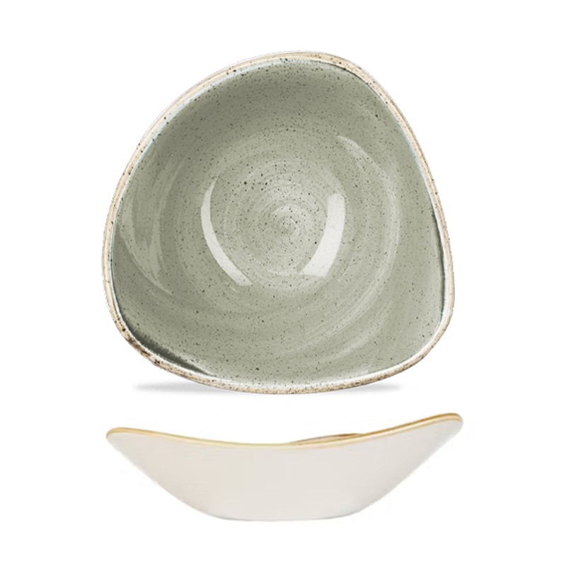Un’eleganza artigianale senza tempo: La bowl triangolare Churchill della linea Stonecast peppercorn grey unisce tradizione, artigianalità e resistenza professionale.