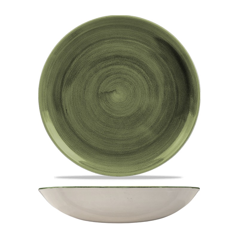 Un’eleganza artigianale senza tempo: il piatto fondo Churchill della linea Stonecast patina burnished green unisce tradizione, artigianalità e resistenza. Ogni pezzo è decorato a mano, con leggere variazioni che lo rendono unico e irripetibile, esaltandone il carattere autentico.