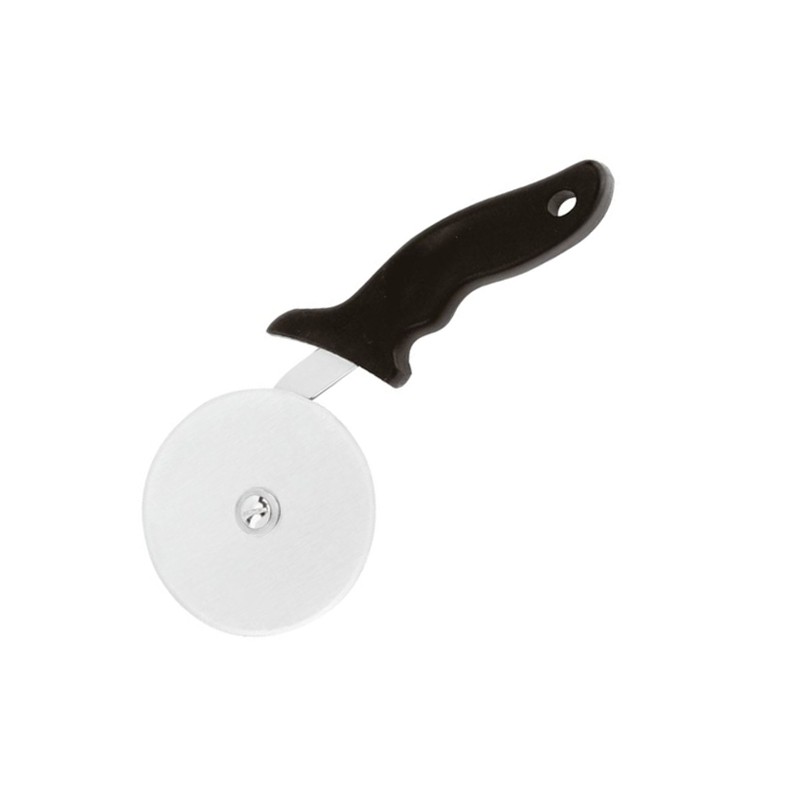Questa rotella tagliapizza con manico nero è un utensile professionale pratico e resistente, perfetto per tagliare pizze di ogni tipo, anche quelle più condite.