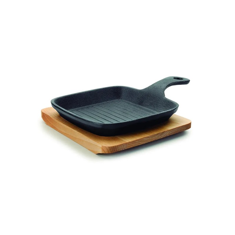 Robusta e funzionale, questa mini griglia da tavolo è realizzata in un unico pezzo di ferro fuso, materiale ad alta conducibilità termica, ideale per la cottura diretta o per mantenere calde le pietanze durante il servizio.