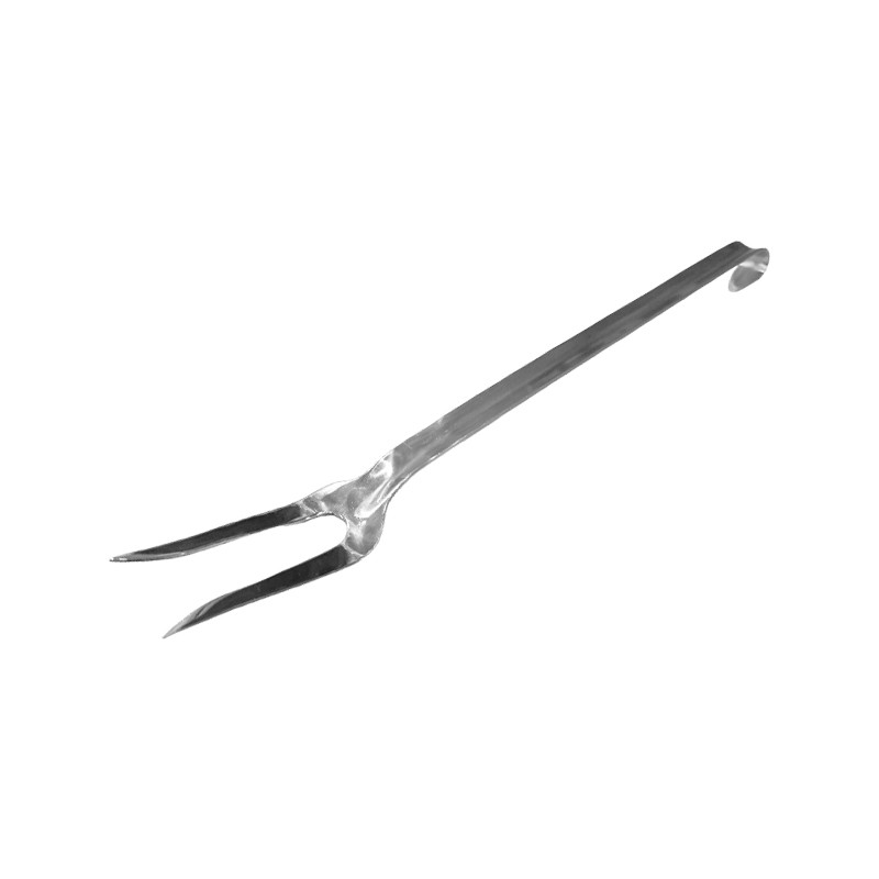 Forchettone cucina con gancio realizzato in acciaio inox 18/10 con spessore di 3 mm, progettato per garantire robustezza, stabilità e lunga durata nel tempo. La finitura lucida a specchio conferisce un aspetto elegante e professionale, ideale per ristoranti, mense, catering e cucine ad uso intensivo.
