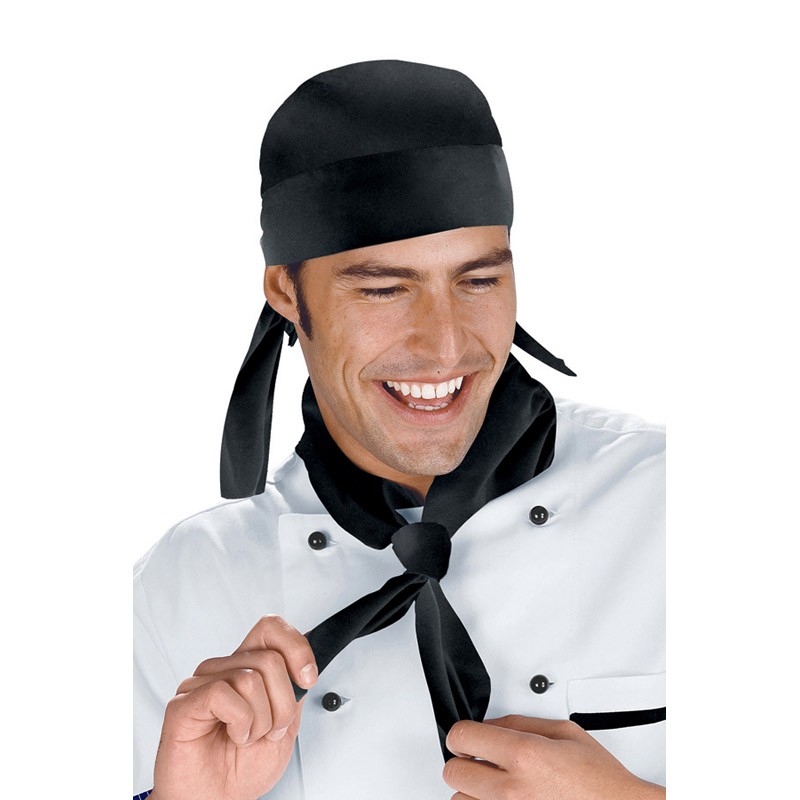 Un accessorio pratico e funzionale, pensato per chi lavora in cucina: il triangolo cuoco nero è ideale per assorbire il sudore durante il servizio o per essere indossato come bandana.