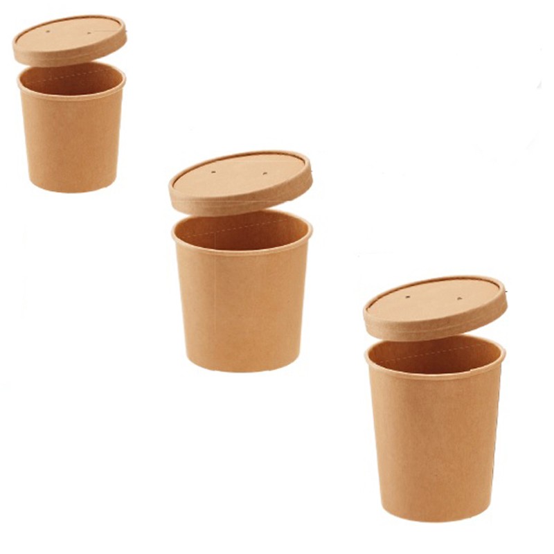Questo contenitore carta con coperchio è ideale per il servizio professionale di cibi caldi in modalità take-away o delivery.