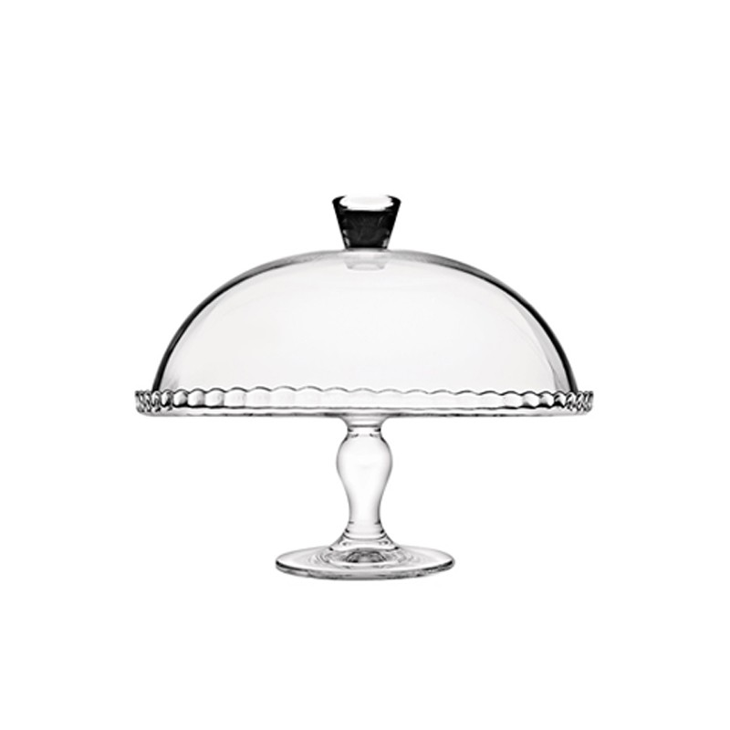 Raffinata e funzionale, questa alzata in vetro con cupola è la scelta ideale per esporre e servire torte, dolci e piccola pasticceria con stile.