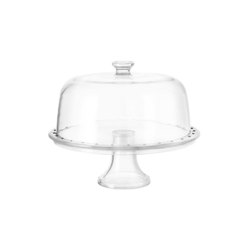 Il piatto in vetro con piedistallo offre stabilità, mentre la cupola trasparente salvafreschezza protegge il contenuto e ne preserva l’aroma più a lungo.