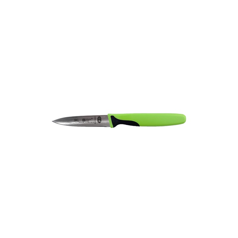 Il manico, è realizzato in materiale plastico di colore verde con estremità antiscivolo nera, studiato per offrire una presa sicura, controllo totale e un’elevata resistenza all’usura anche in caso di utilizzo intensivo. Il coltello è certificato NSF International, conforme agli standard dell’industria alimentare. Un accessorio indispensabile per i professionisti che cercano precisione, affidabilità e praticità nelle operazioni quotidiane di pelatura.