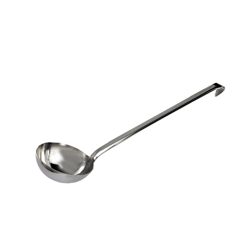 Questo mestolo da cucina professionale è realizzato in acciaio inox 18/C lucido di un unico pezzo, senza alcuna saldatura, per garantire massima igiene, robustezza e durata nel tempo.