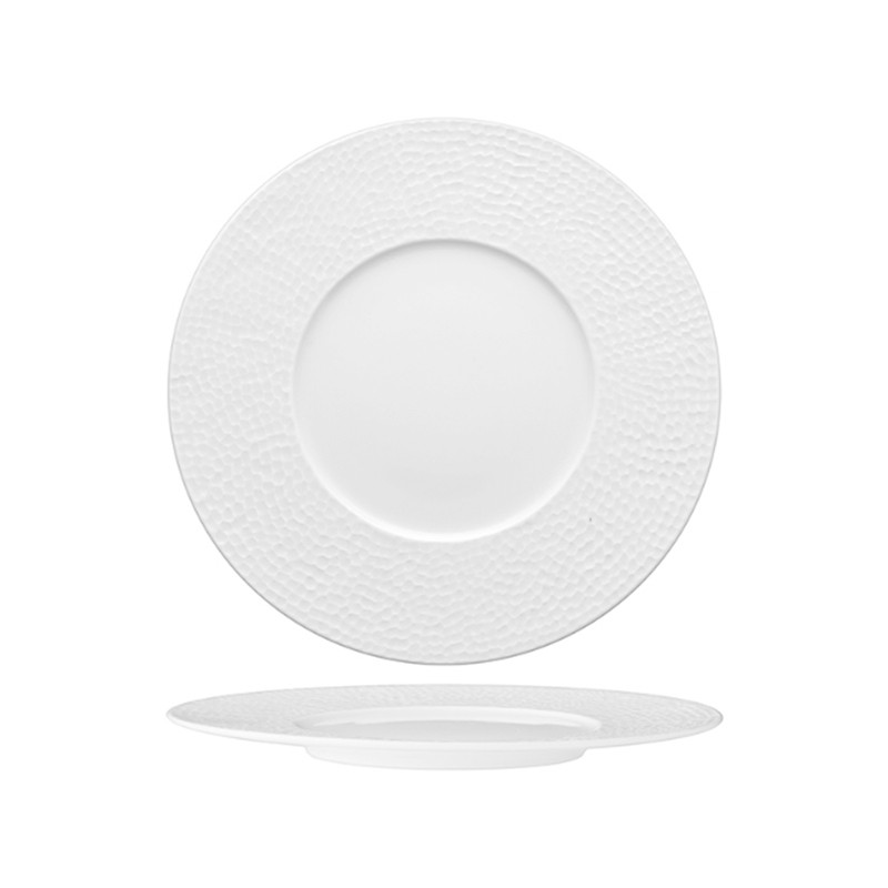 Il piatto dessert martello è raffinato ed elegante ed arricchisce la tavola con il suo bordo martellato. La superficie bianca con smalto extra lucido dona luminosità ed esalta al meglio le creazioni culinarie, rendendolo ideale per servire dessert, antipasti o piccole portate gourmet.